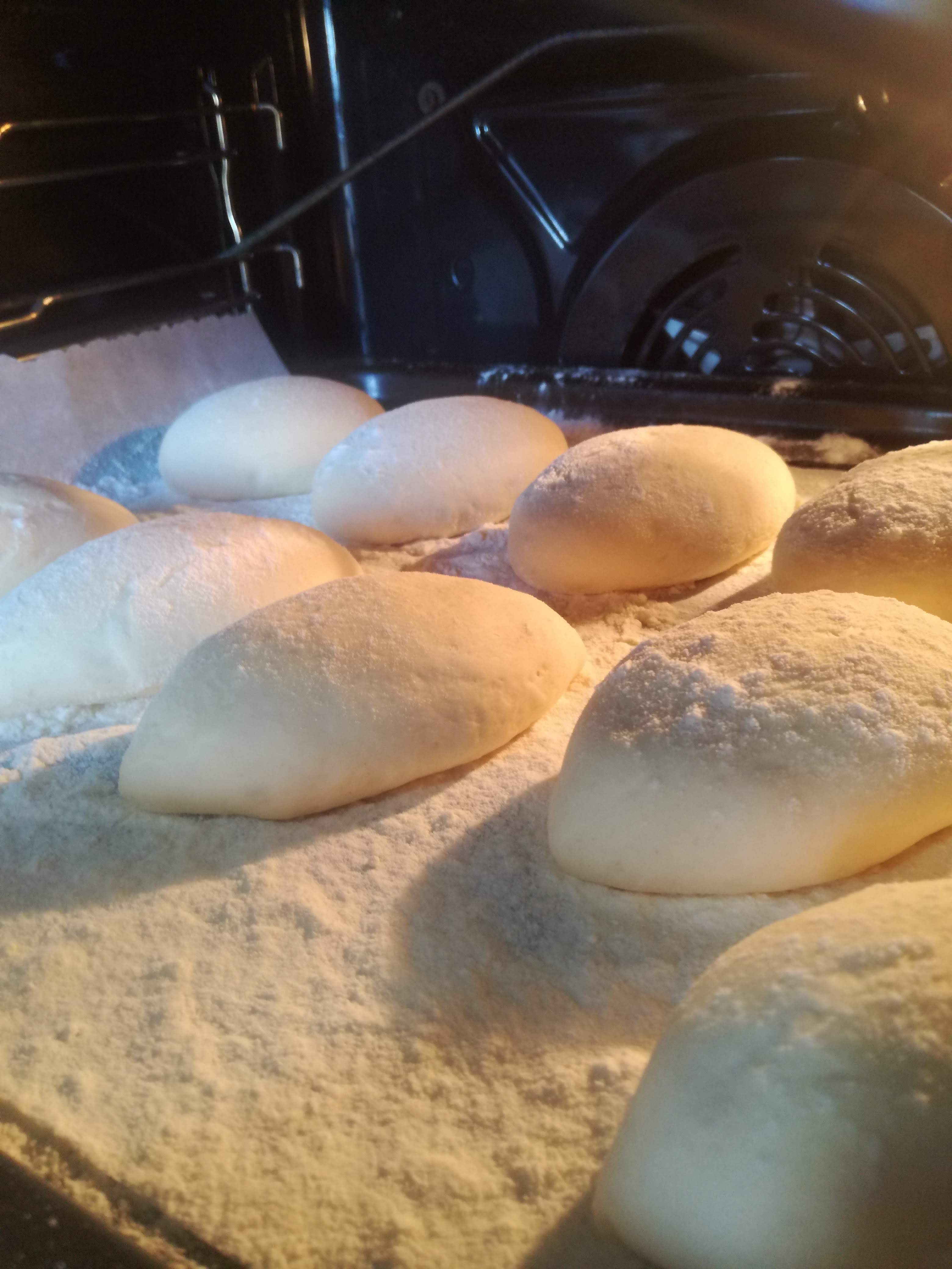 - Deuxième pousse: 30 min à température ambiante. On ne laisse pas trop lever. On farine bien la plaque sur laquelle on laisser pousser nos beignets et saupoudre légèrement de farine.