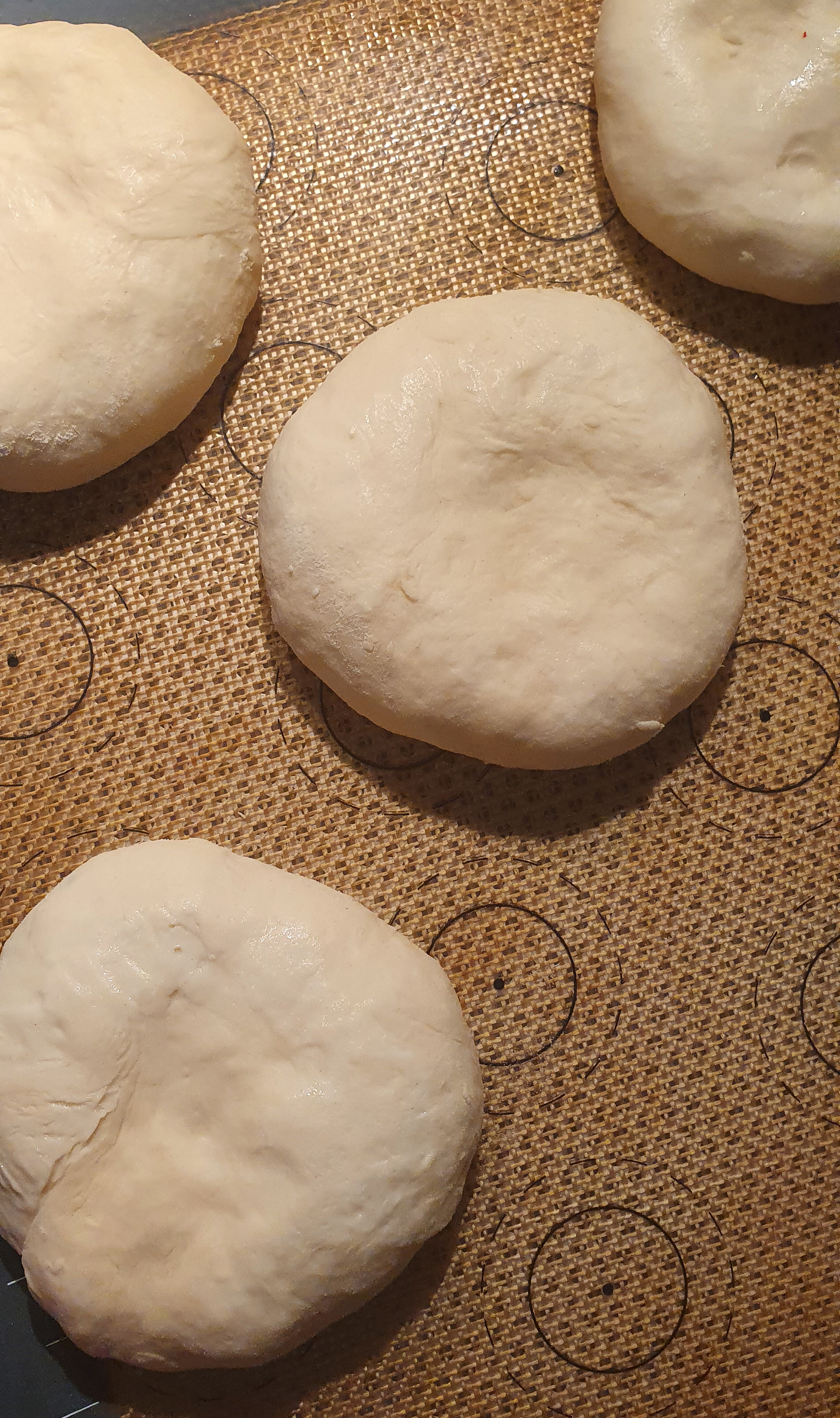 - On dégaze et on forme 6 ou 7 boule de 80 g/90g (à peu près) chacune.