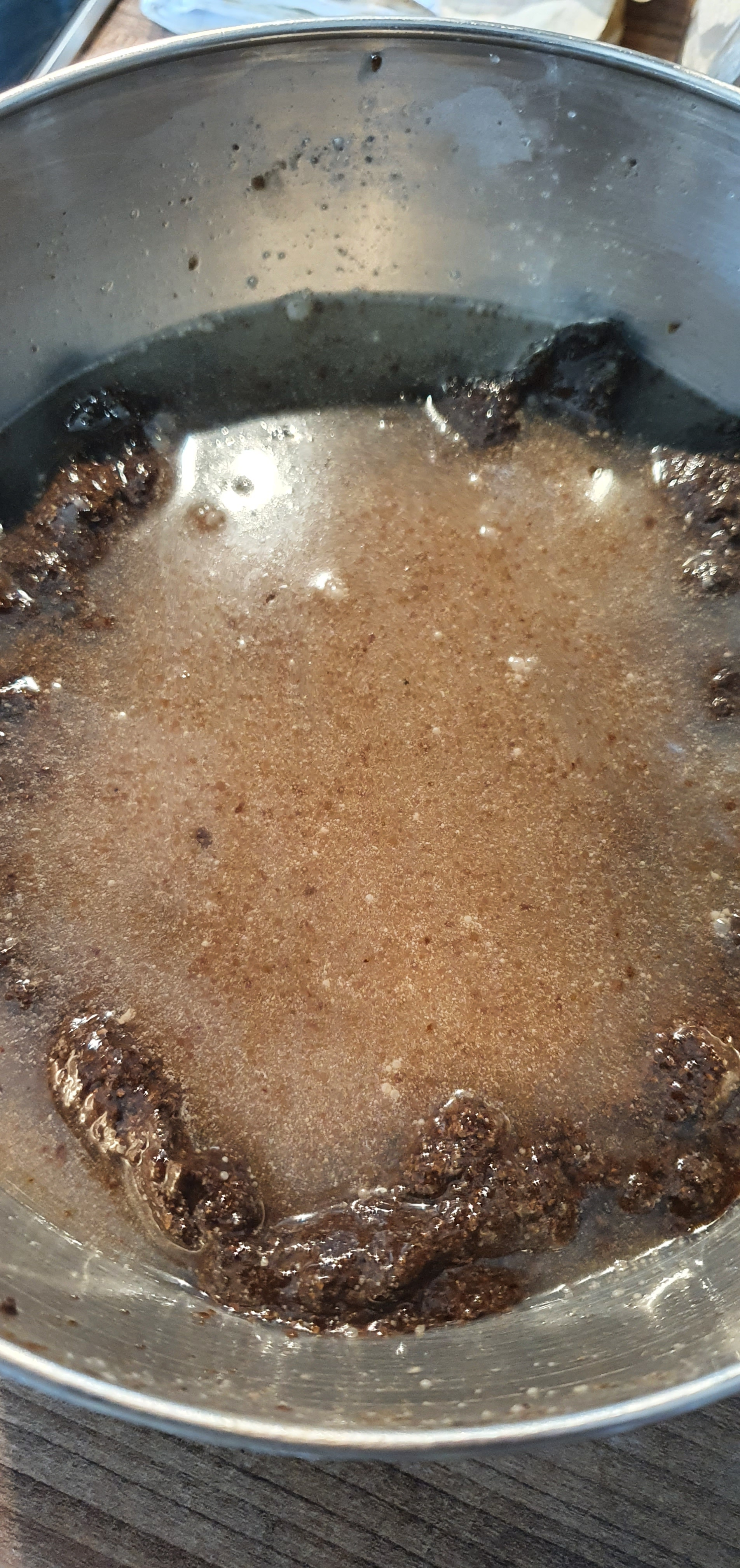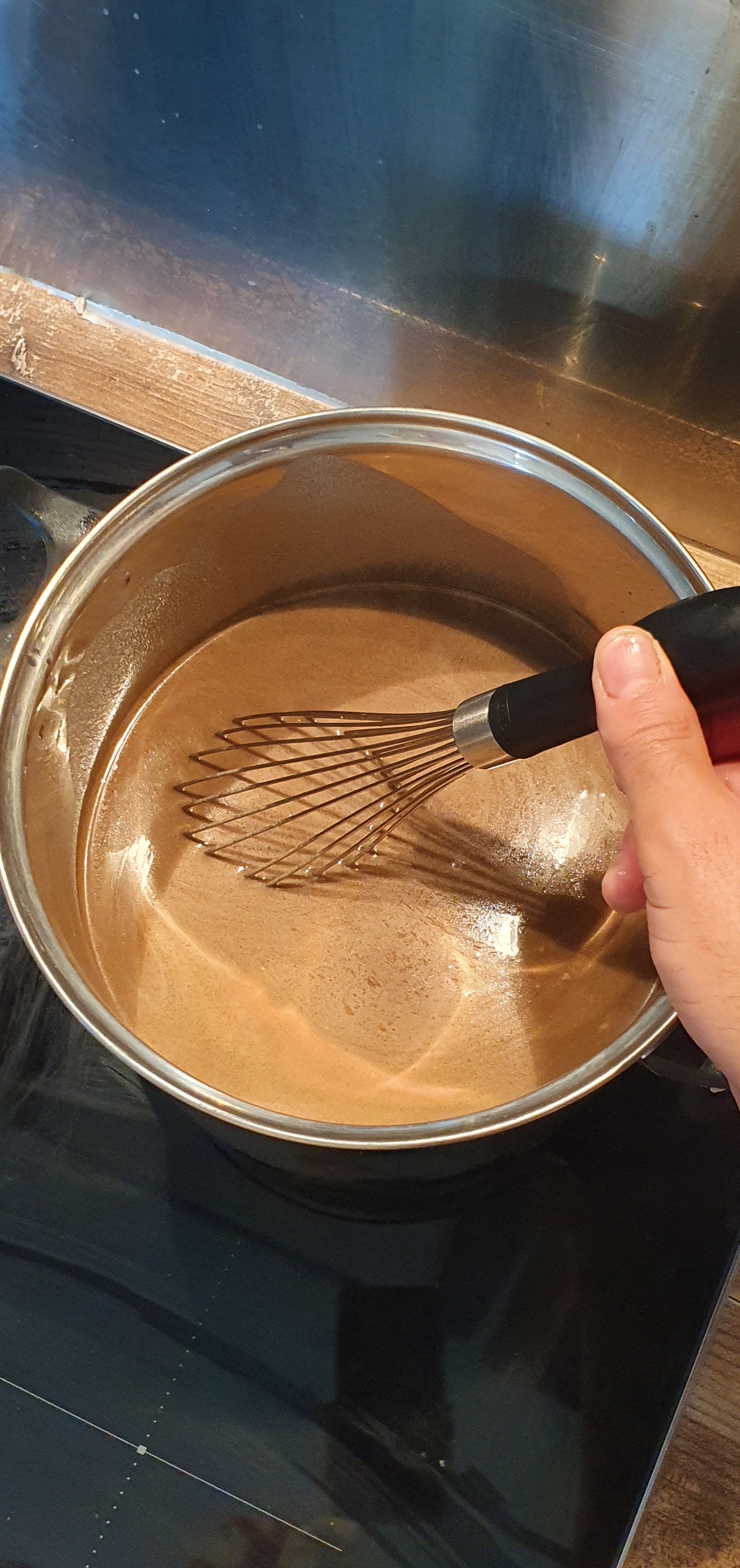 - On cuit à feu doux en mélangeant pendant à peu près 1h tout en mélangeant avec un fouet.