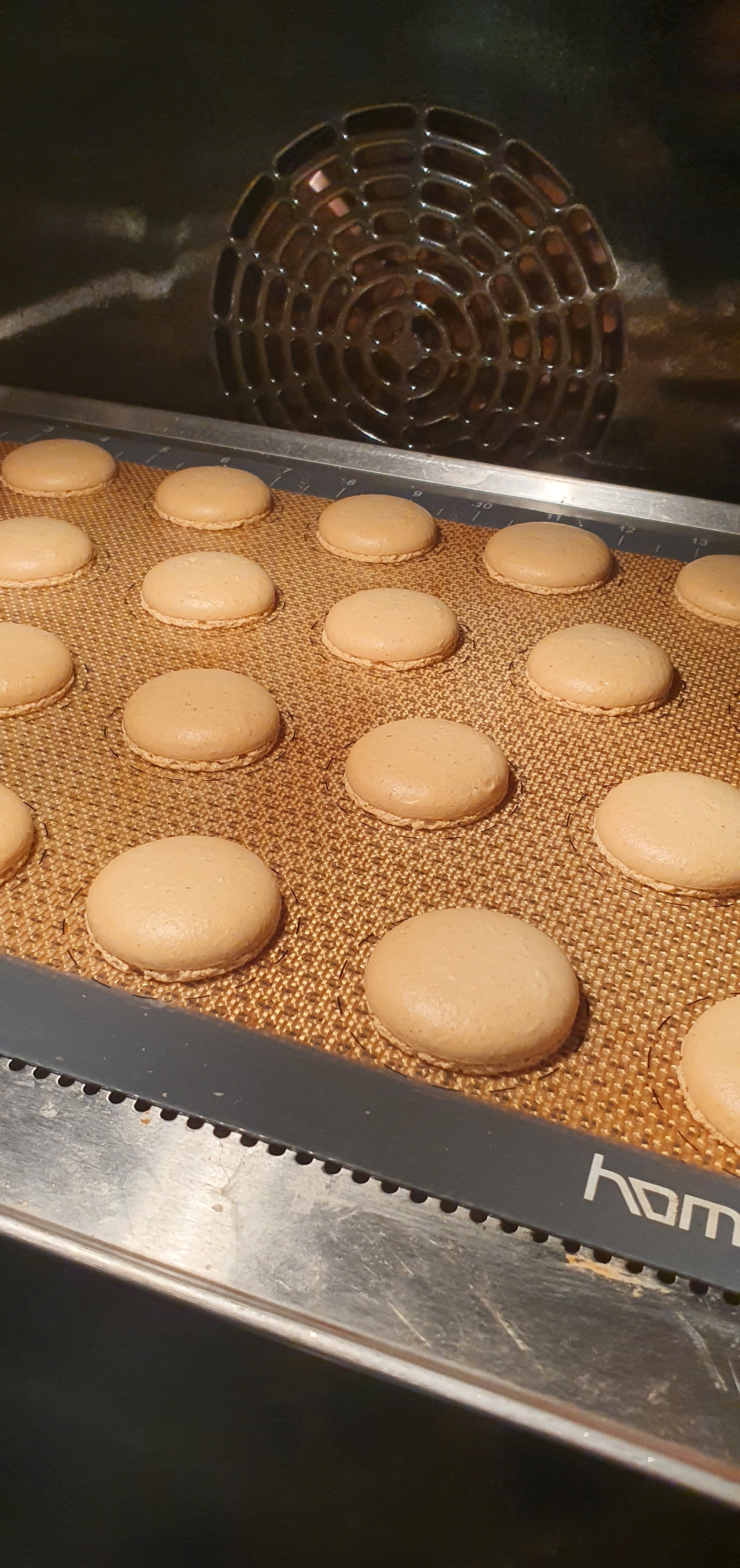 Mes essaie avec le café n’étant pas une réussite jusqu’à ce que je tombe sur cette recette. C’est de la que j’ai trouvé l’idée de dissoudre le café dans les blanc d’oeuf. Contrairement à la recette, et comme je monte tout les blancs, j´ai ajouté la chicorée au blanc monté eb meringue. L’avantage est de colorer uniformément la meringue, ce que j’ai pas réussi à faire en mettant le café dans la pâte avant macaronage. L´autre option et se faire comme la recette dont j´ainmis le lien: faire une pâte avec led poudres et la moitié des blancs oeufs dans lesquels on a dissout le café.