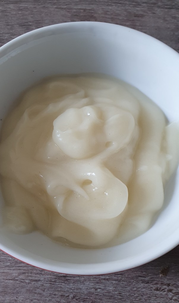 - Le mélange s’épaissie comme une crème pâtissière avec un aspect gélatineux.