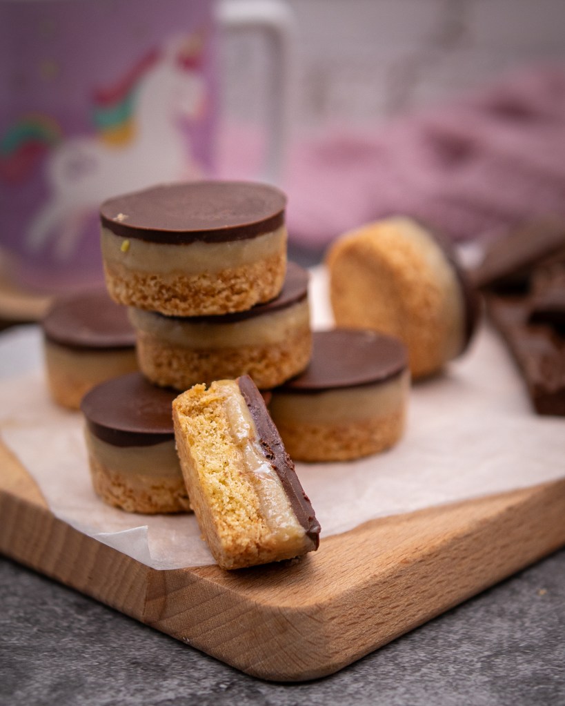 Eh bien, un shortbread, sorte de sablé écossais, sur lequel on coule du caramel et qu’on couvre de chocolat.