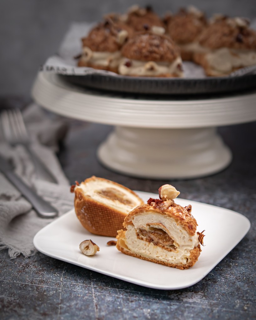 - On poche la crème mousseline dans chaque choux du Paris Brest
