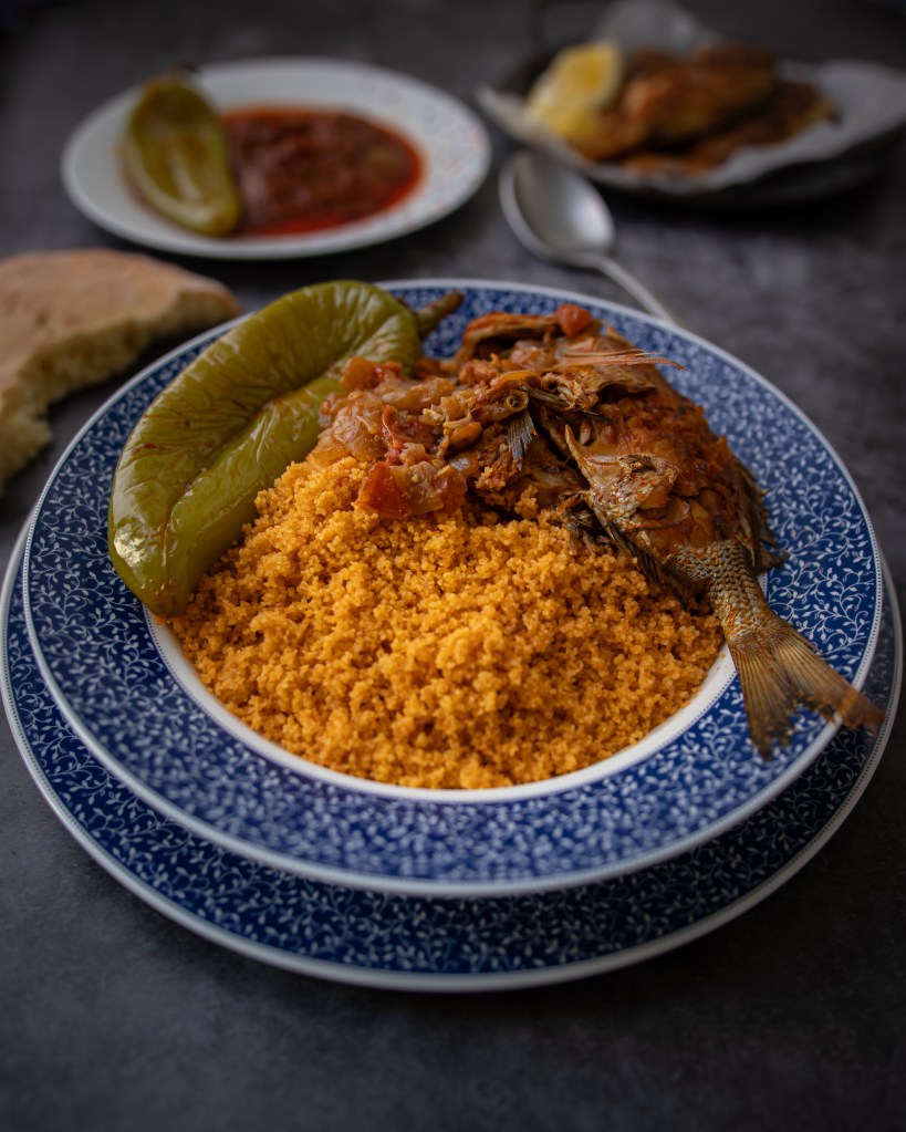 - Dégustez le couscous encore chaud en l’accompagnant de morceau de poisson.