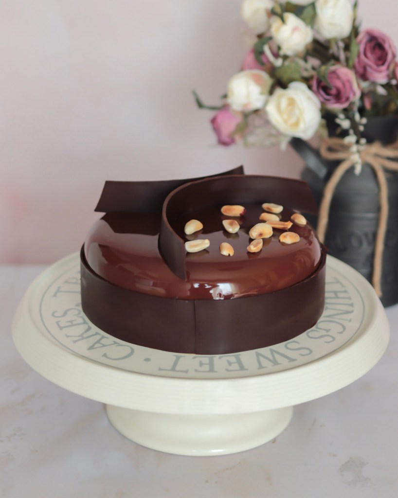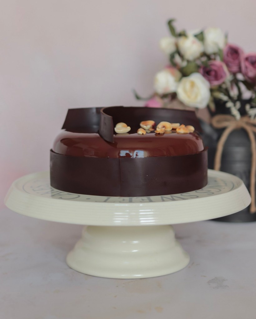| J | Glaçage miroir et cerclage en chocolat |